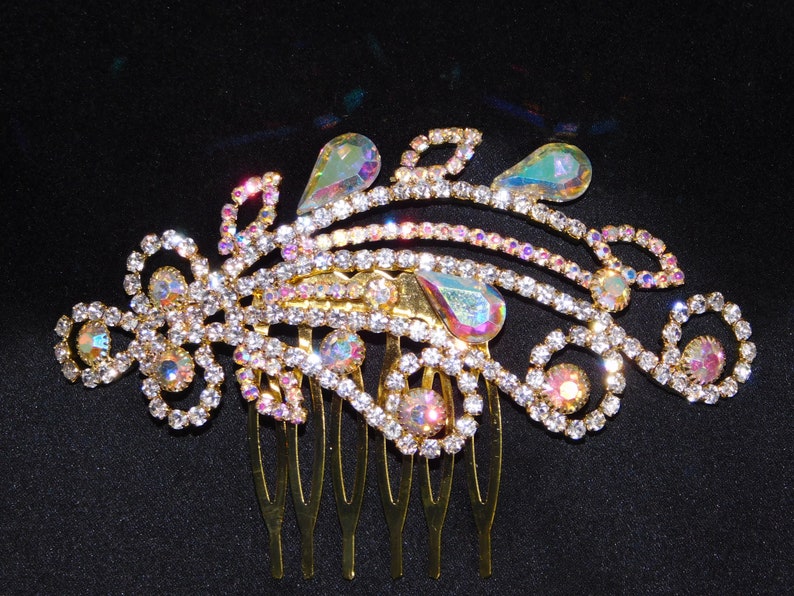 Gold Ab Clear Rhinestone Bridal Hair Comb Hair Accessories Etsy Rhinestone Wedding Hair Accessories