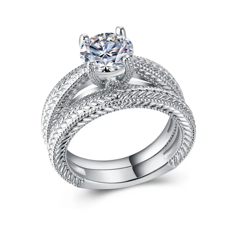 14kt White Gold Womens Round Diamond Bridal Wedding Engagement Ring Sets Wedding