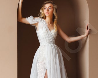 Asymmetrical Neckline Toga Inspired Grecian Roman Goddess Style Roman Goddess Style Wedding Dresses