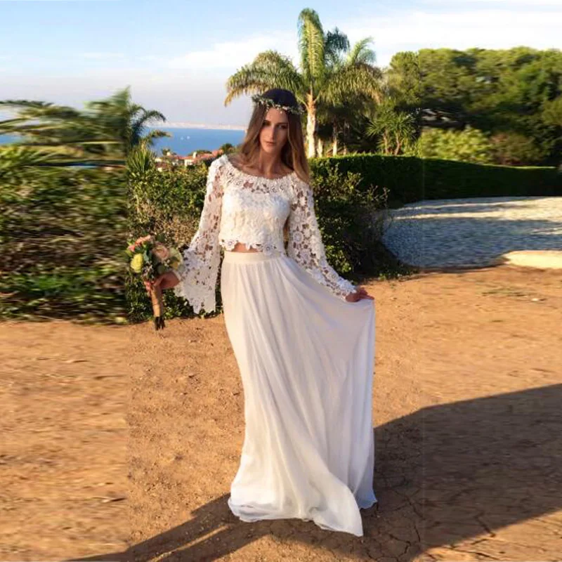Romantic Summer Two Pieces Lace Beach Wedding Dress 2017 Long Romantic Flowing Wedding Dresses