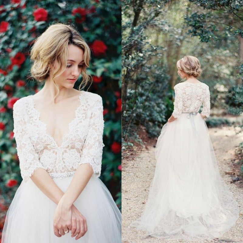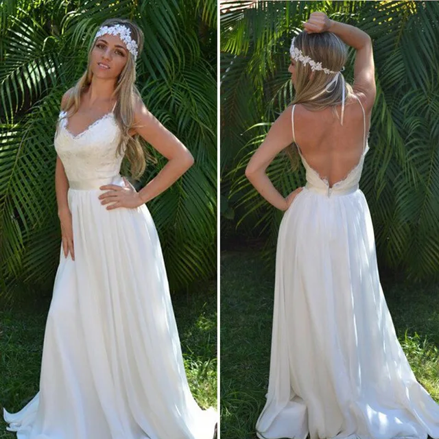 Wedding Dress Beach 2018 Cheap Chiffon Simple Brides Dress Romantic Lace Chiffon Wedding Dress
