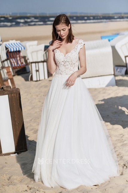 This Romantic Lace And Tulle Wedding Dress Features Natural White Romantic Lace Tulle Wedding Dress