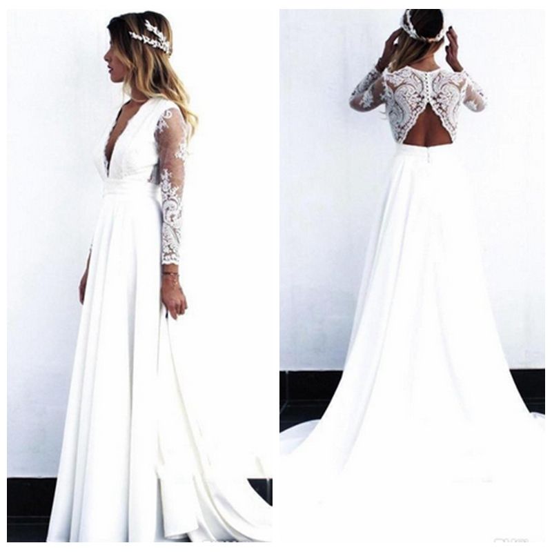 Romantic Bohemian Beach Wedding Dresses 2019 Lace Up Back Lace Romantic Wedding Dresses Bohemian