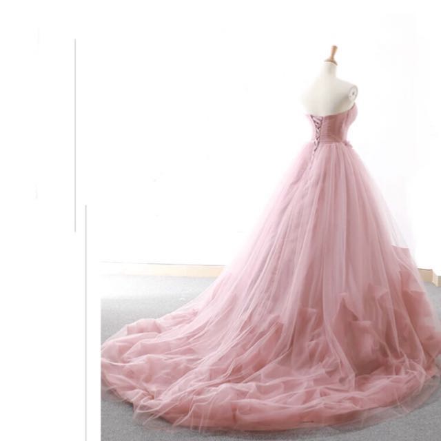 La Vie En Rose Blush Pink Tulle Wedding Gown With Long Train Rose Color Wedding Dress