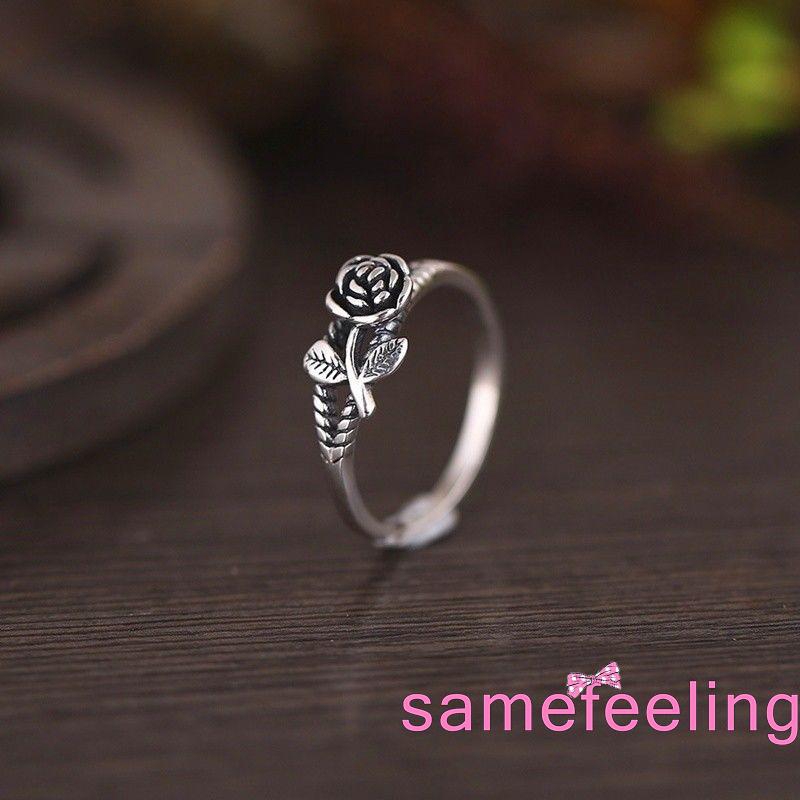 Exquisite 925 Silver Rhinestone Diamond Ring Sparkling Rose Flower Rose Flower Wedding Ring