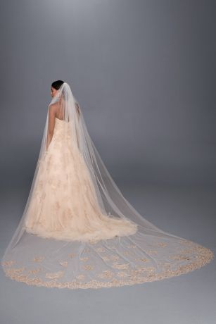 David S Bridal Ivory And Rose Gold Cathedral Veil And Rose Gold Rose Gold Wedding Dress Davids Bridal