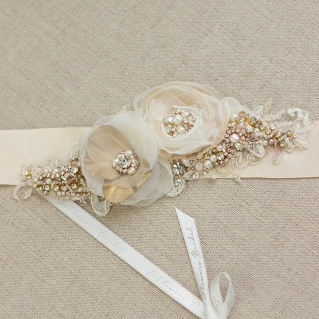 Bridal Sash Gold Wedding Belt Rose Gold Bridal Dress Sash Wedding Dress Sash Belt Rustic Shabby Chic Floral Champagne Ivory Nude Ooak 2444894 Weddbook Rose Gold Wedding Dress Sash