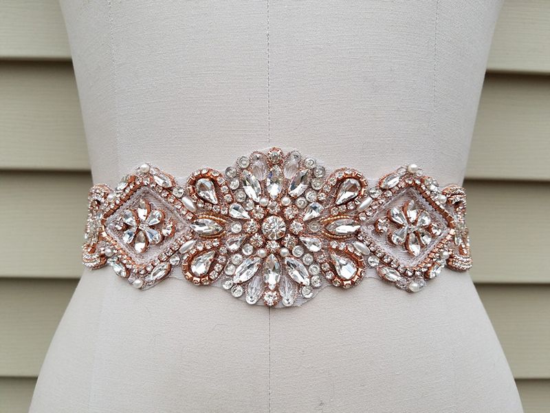 Rose Gold Bridal Sash Wedding Belt Wedding Gown Dress Accessory Crysta Madison Carolina Bridal Rose Gold Wedding Dress Sash