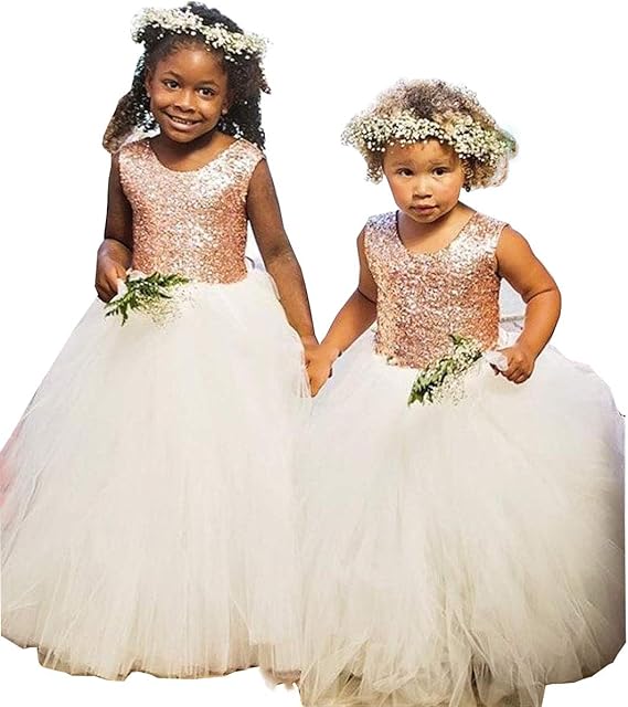 Rose Gold Sequin Tulle Bridesmaid Wedding Flower Girl Etsy Rose Gold Wedding Dresses For Flower Girls