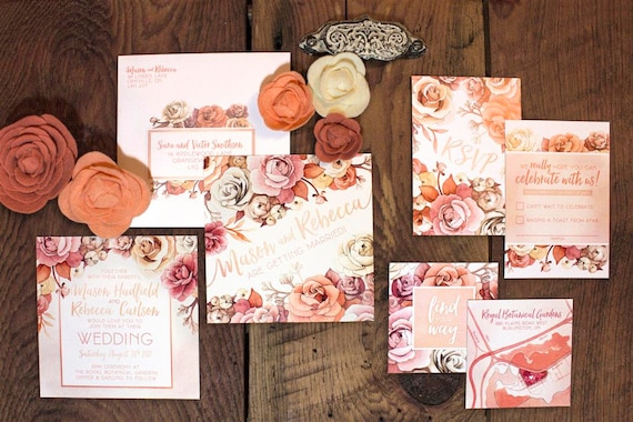 Blush Rose Gold Wedding Invitation Theme Sample Botanical Etsy Rose Gold Wedding Invitations