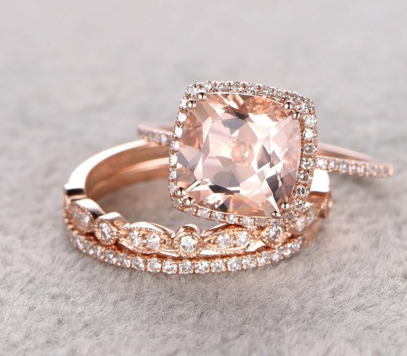 Aquamarine Engagement Wedding Ring 14k Rose Gold Wedding Ring Set Rose Gold Wedding Rings Set