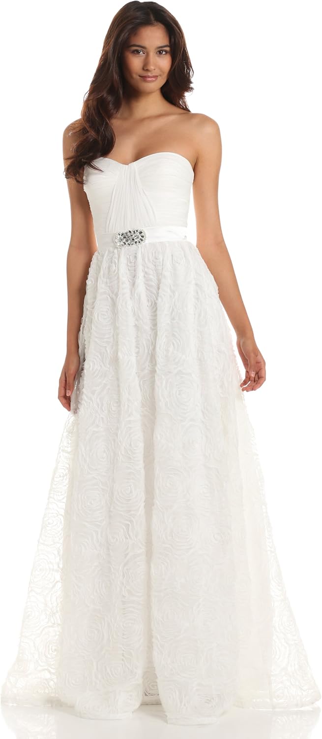 Taffeta Strapless A Line Wedding Dress With Lavish Rosette Skirt Rosette Skirt Wedding Dress