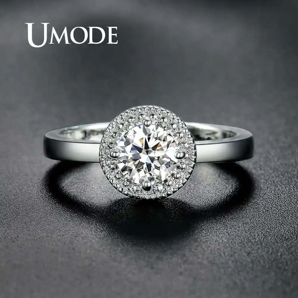Umode Simple Round Wedding Rings For Women Single Cubic Zirconia Engagement White Gold Jewelry Girls Gifts Round Wedding Rings For Women