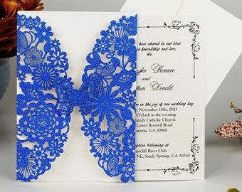 Amazon Com Wishmade 50x Royal Blue Glitter Laser Cut Wedding Royal Blue Butterfly Wedding Invitations