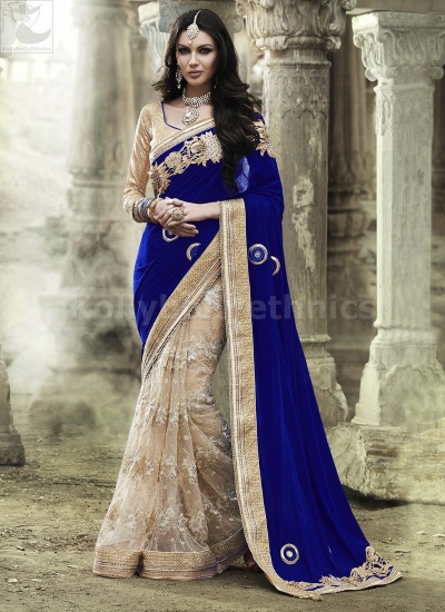 Royal Blue Net And Velvet Wedding Wear Saree Royal Blue Velvet Wedding Dress