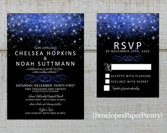 Elegant Silver Confetti On Royal Blue Invitation Blue Invitation Royal Blue Wedding Invites