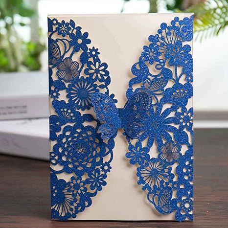 Amazon Com Wishmade 50x Royal Blue Glitter Laser Cut Wedding Royal Wedding Invitation Cards Designs