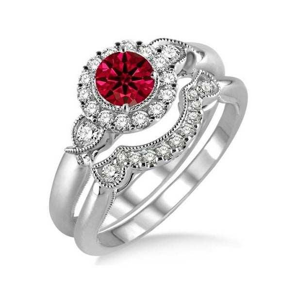 Jeenmata 1 25 Carat Ruby Diamond Antique Three Stone Flower Halo Bridal Set On 14k White Gold Ruby And Diamond Wedding Ring Set For Women Walmart Com Walmart Com Ruby And Diamond Wedding Ring Sets