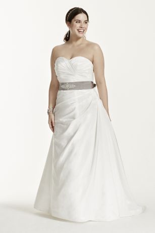 Plus Size Ruched Wedding Dress With Bow At Hip David S Bridal Ruched Wedding Dress Plus Size