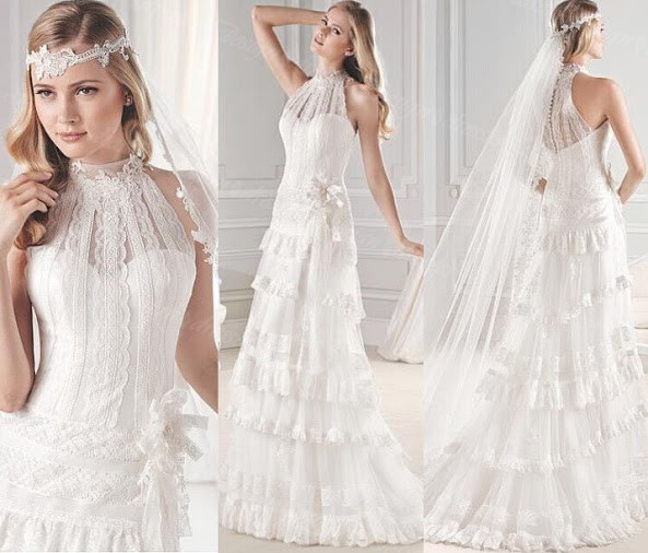Beautiful Wedding Dress Made From Lovely Ivory Burnout Fabric And Ruffle Halter Wedding Dress
