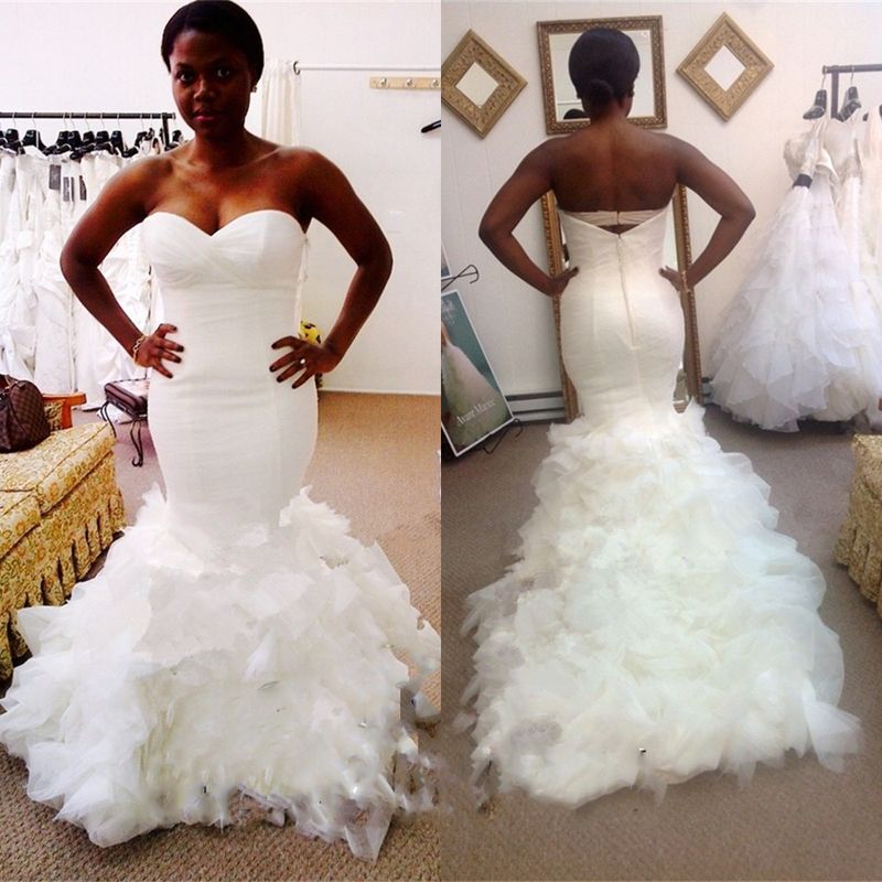 2017 New Plus Size Nigerian Mermaid Wedding Dresses Online Wdding Ruffle Mermaid Wedding Dress