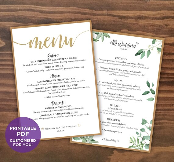 Printable Wedding Menu Pdf Rustic Black Leafy Greenery Etsy Rustic Black And White Wedding