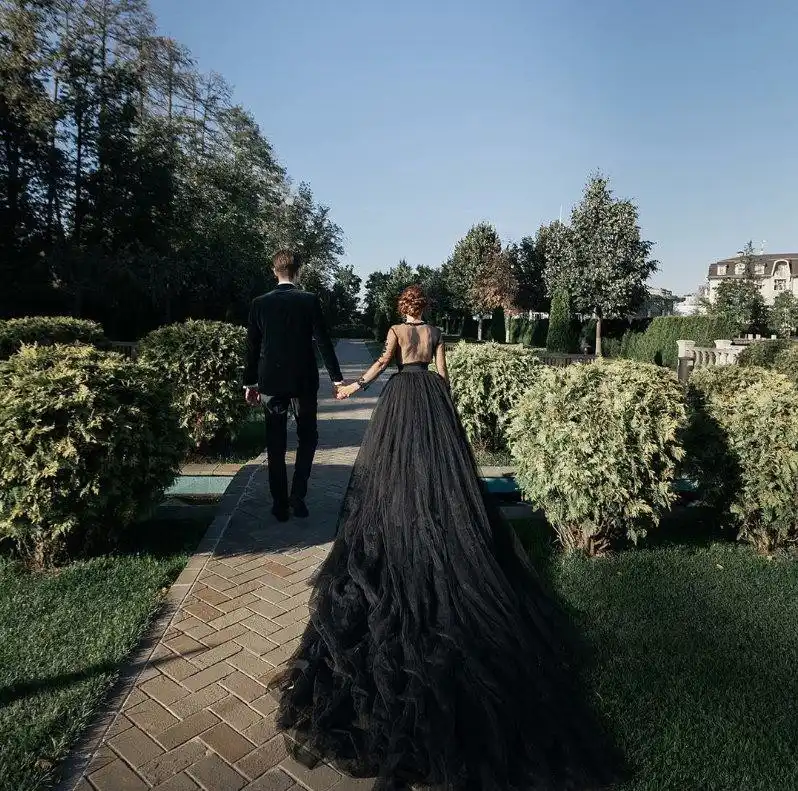Rustic Country Black Gothic Wedding Dresses V Neck Illusion Top Lace Long Sleeves Fall Tulle Wedding Dress Sweep Train High Slit Aliexpress Rustic Country Fall Wedding Dresses