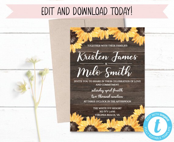 Sunflower Wedding Invitation Set Rustic Wedding Invitation Rustic Sunflower Wedding Invitations