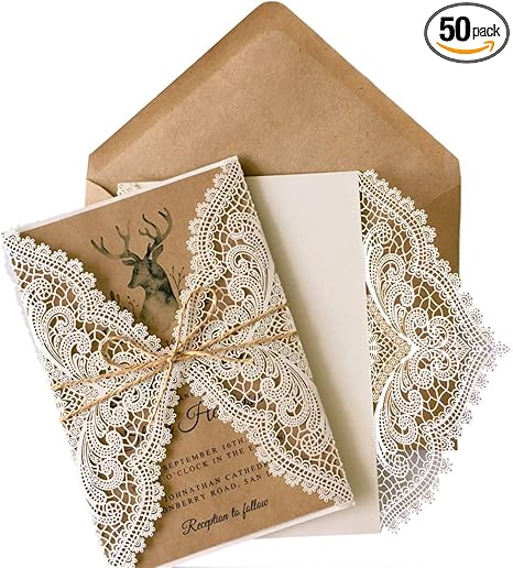 Amazon Com Picky Bride 50pcs Vintage Lace Wedding Invitations Rustic Wedding Invitations With Lace