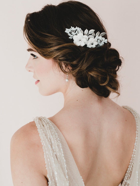 White Large Sakura Cherry Blossom Bridal Hair Comb Gena Etsy Sakura Cherry Blossom Wedding Dress