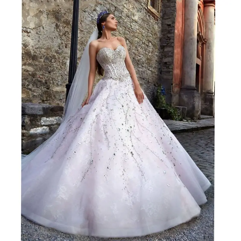Luxury Bling Beading Wedding Dresses 2016 Sparkly Crystals Glitter Satin Ball Gown Wedding Dress With Bling