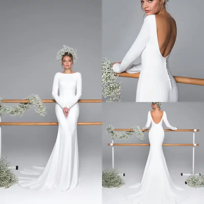 Bateau Neckline Satin Wedding Dress 3 4 Sleeve Vestido De Noiva Satin Bateau Neckline Wedding Dress