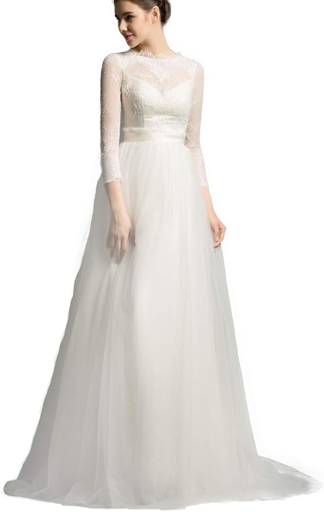 Luxury Beaded Long Sleeve Ivory Long Wedding Gown Promfy Satin Long Sleeved Wedding Dress
