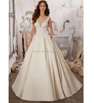 Low Back Spaghetti Strap Chapel Train Satin Bridal Gown Vq Satin Low Back Wedding Dress
