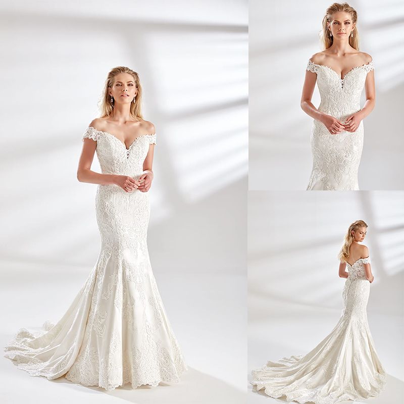Mermaid Satin Off Shoulder Chapel Train Wedding Dresses Gowns Satin Off Shoulder Sheath Wedding Dress