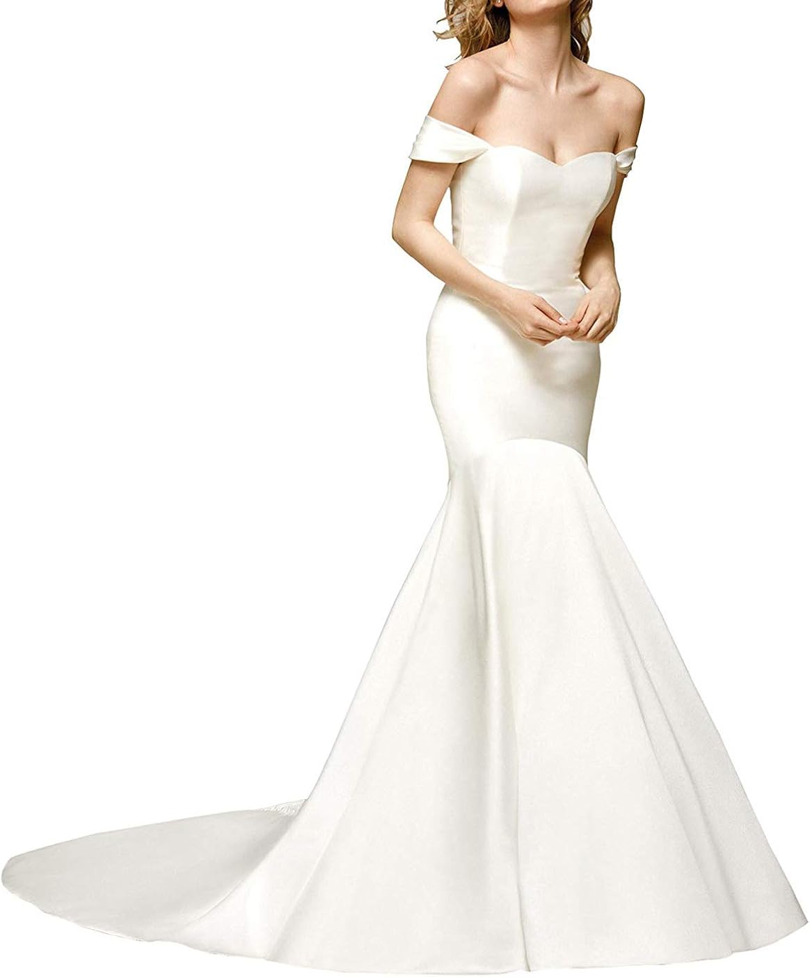 Pearlbridal Women S Open Back Satin Off The Shoulder Mermaid Long Satin Off The Shoulder Mermaid Wedding Dress