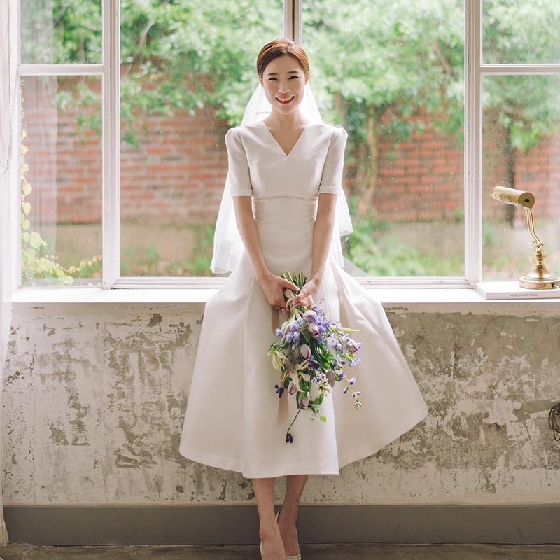 French Satin Wedding Bridal Simple Backless Retro Hepburn Wedding Satin Polyester Wedding Dress