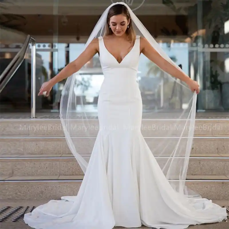 175 79 Delicate Tulle Acetate Satin V Neck Neckline Mermaid Satin V Neck Mermaid Wedding Dress