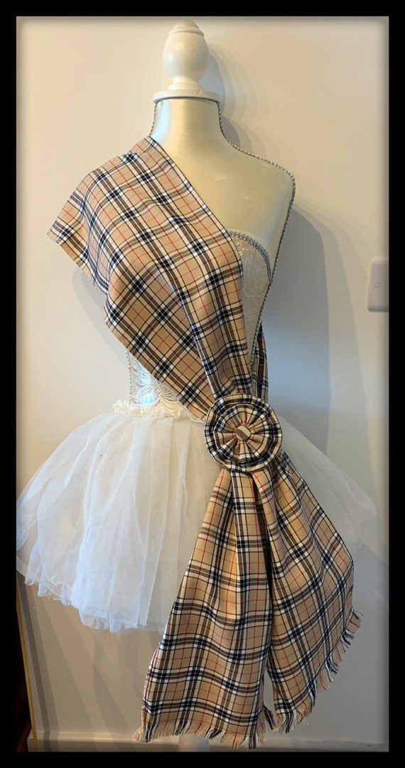 Caramel Thompson Tartan Sash Rosette Burns Night Scottish Etsy Scottish Wedding Dress With Tartan Sash