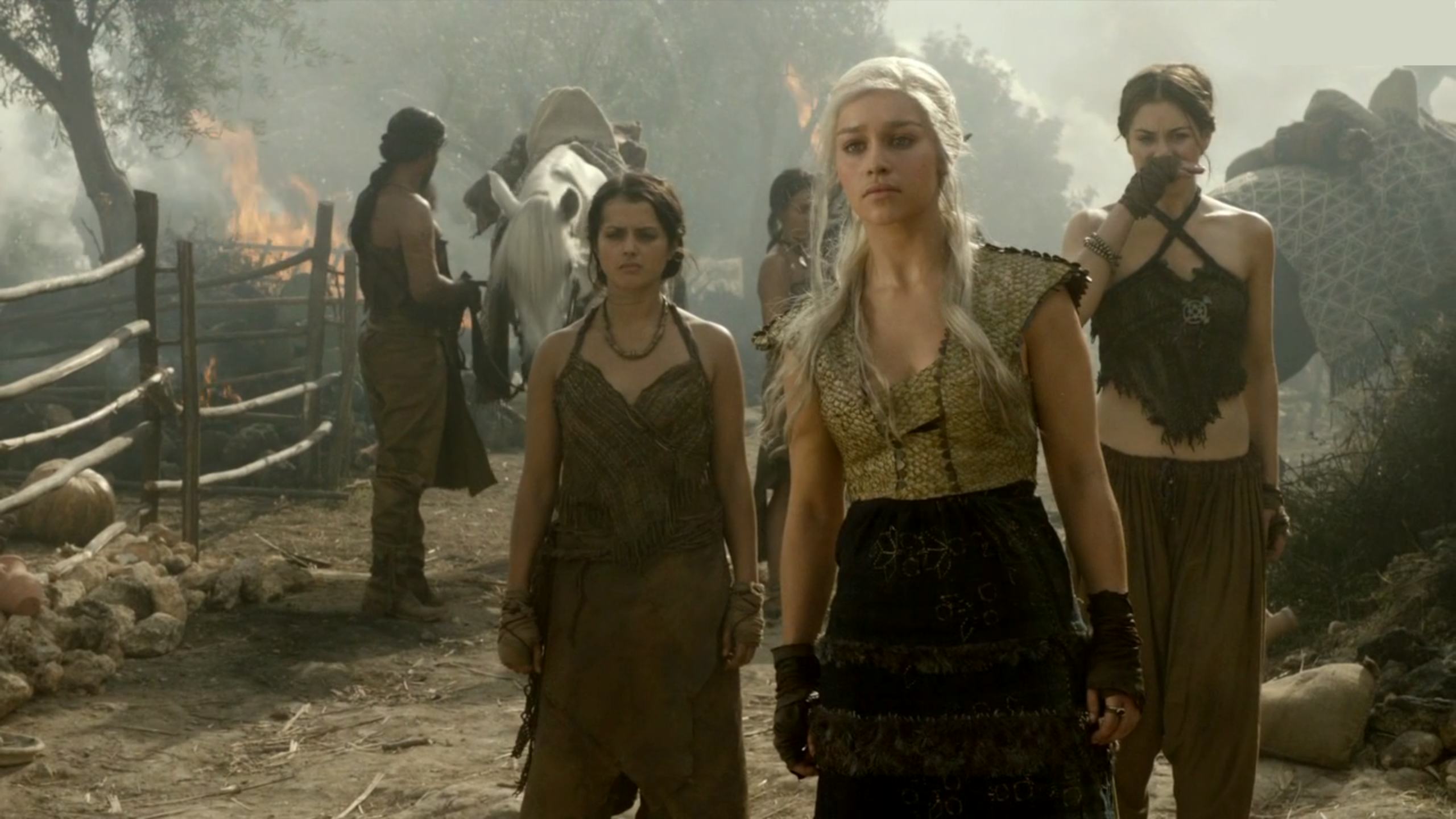 Game Of Thrones Emilia Clarke Ranks Her Daenerys Costumes Ew Com Season 1 Daenerys Wedding Dress