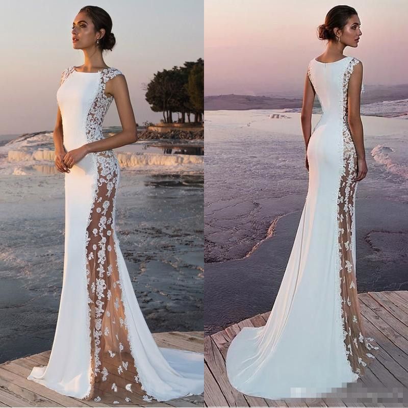2019 New White Satin Champagne See Through Tulle Sheer Bodice Custom Made Wedding Dresses Mermaid Lace Sleeveless Bridal Gowns Mermaid Type Wedding Dresses Pretty Mermaid Wedding Dresses From Sweety Wedding 139 92 Dhgate Com See Through Wedding Dress Bodice