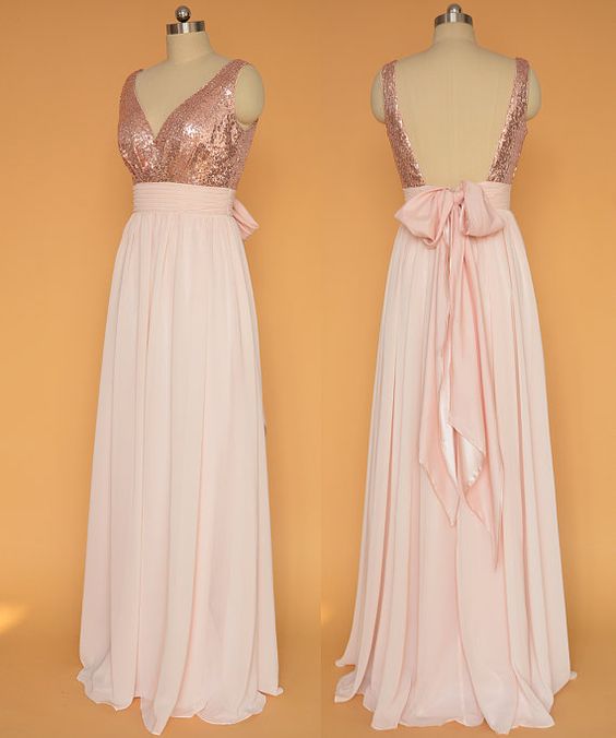 Sequins Chiffon V Neck Bridesmaid Dresses Plus Size Rose Gold Sequin Rose Gold Pink Wedding Dress