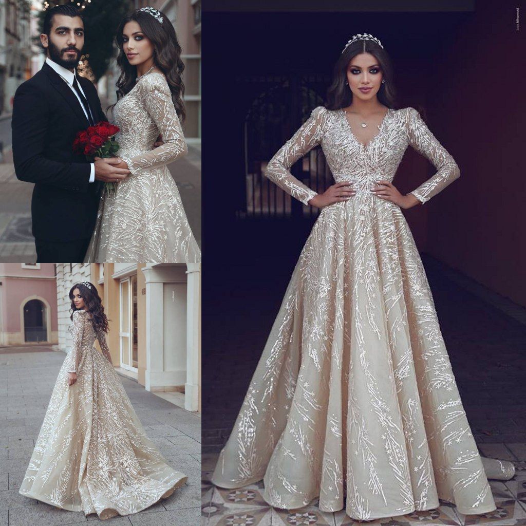 Sexy Sequins Appliques Long Sleeves Wedding Dress 2019 Tidebuy Com Sequin Wedding Dress Long Sleeve