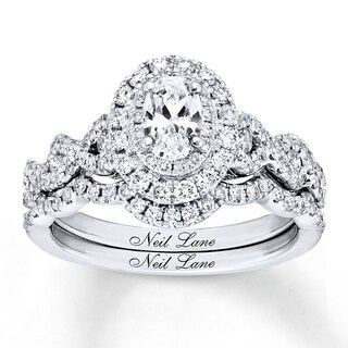 5 Ct T W Diamond Cluster Frame Three Piece Bridal Set In 14k Sets Of Wedding Rings