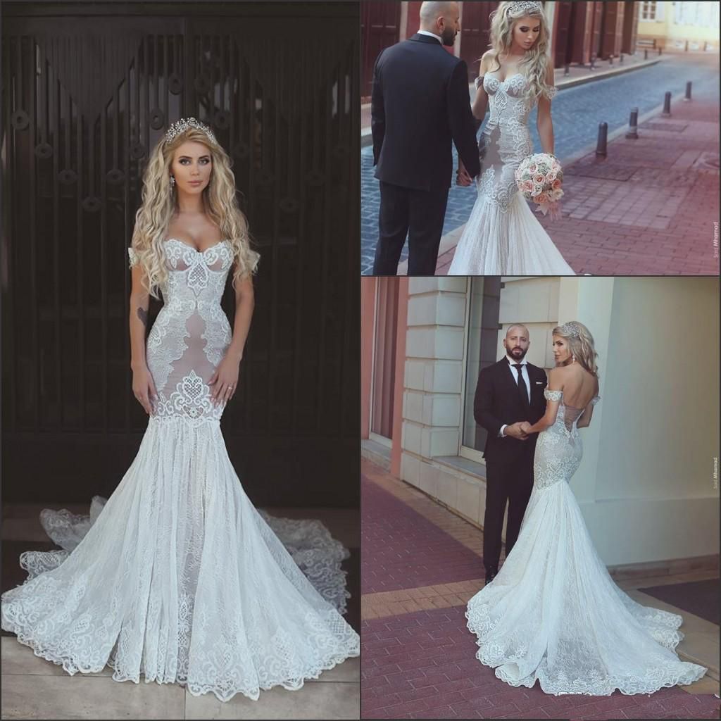Beadings Sexy Lace Wedding Dress With Alluring Applique Sleeves Sexy Lace Wedding Dress