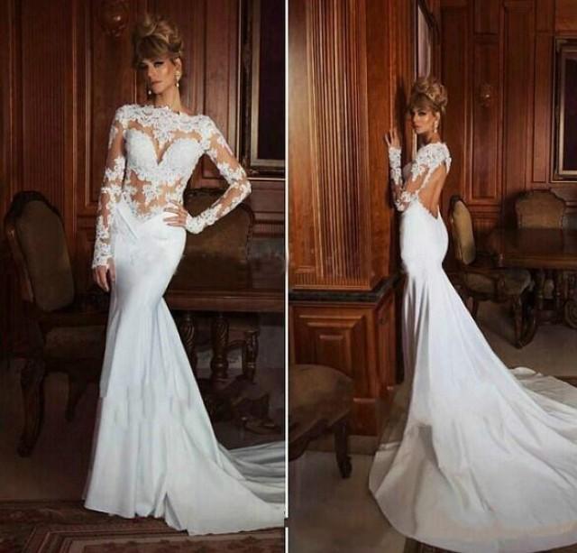 Sexy Open Back See Through Lace Mermaid Wedding Bridal Dresses Sexy Open Back Wedding Dress
