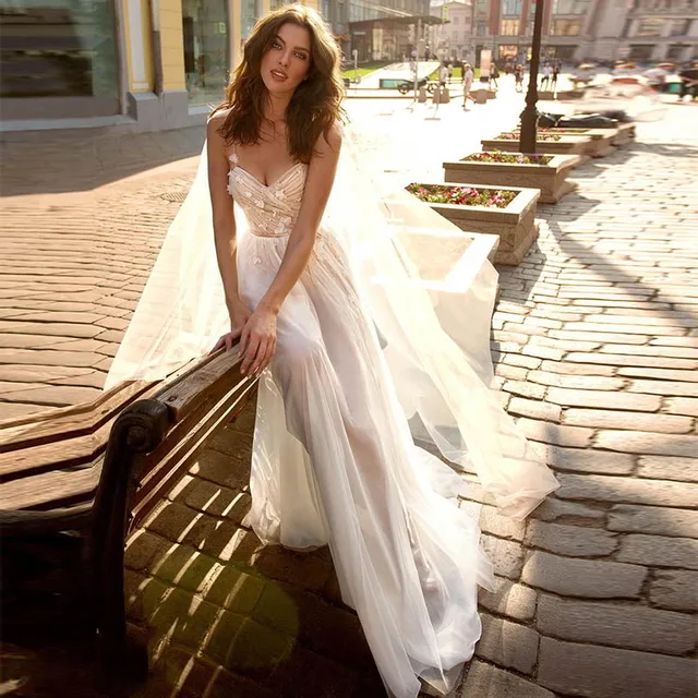 Sheer Tulle Lace Appliques Sexy Summer Beach Wedding Dress Sexy Summer Wedding Dress