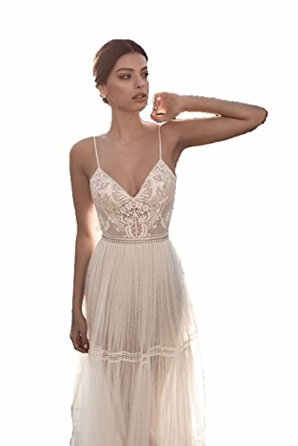 Sexy Backless Spaghetti Straps Lace Summer Boho Bohemian Beach Sexy Summer Wedding Dress