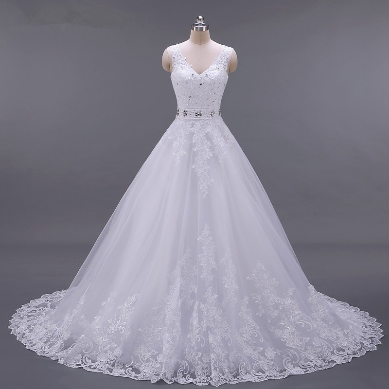 L112 Sexy V Neck Lace Top Wedding Dresses Charming Layers Wedding Sexy Vintage Wedding Dresses