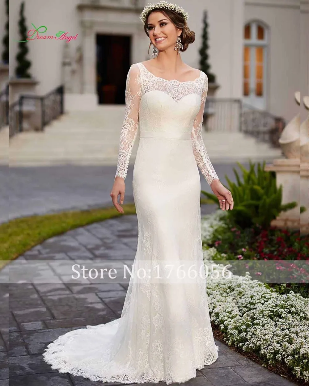 Modest Sheath Wedding Dress Lace Long Sleeves Vestido De Casamento Sheath Wedding Dresses With Lace Sleeves